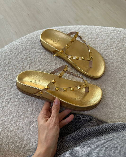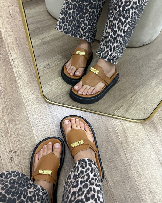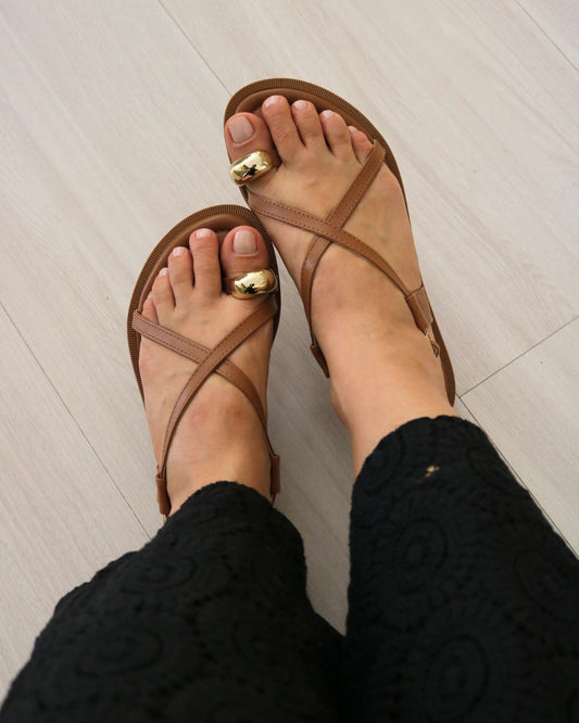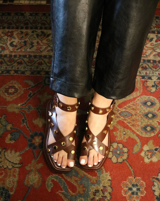 Sandália Pedraria Em Couro Legítimo Marrom Tay