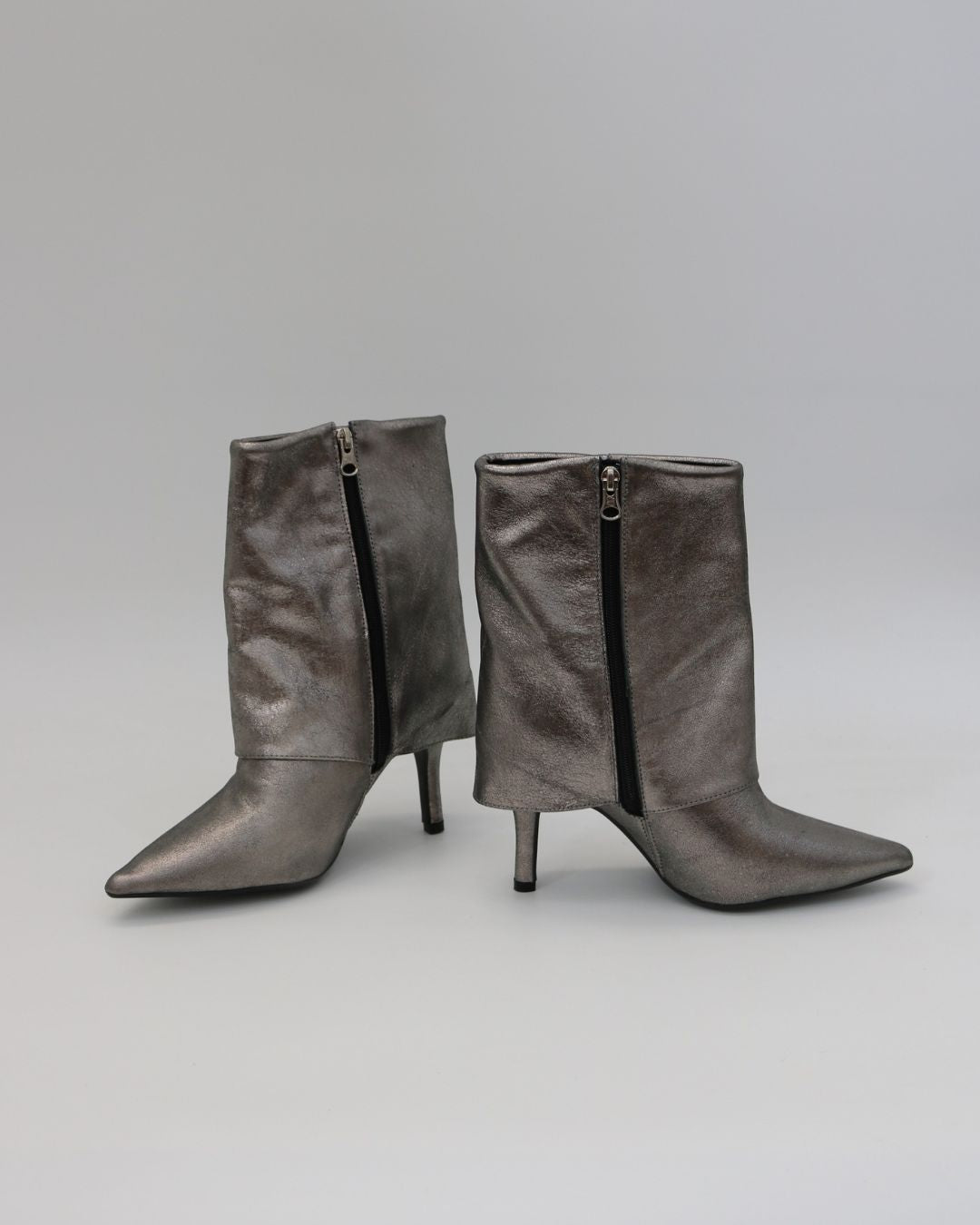 Confeccionada no couro legítimo, zíper interno, salto fino de 8 cm