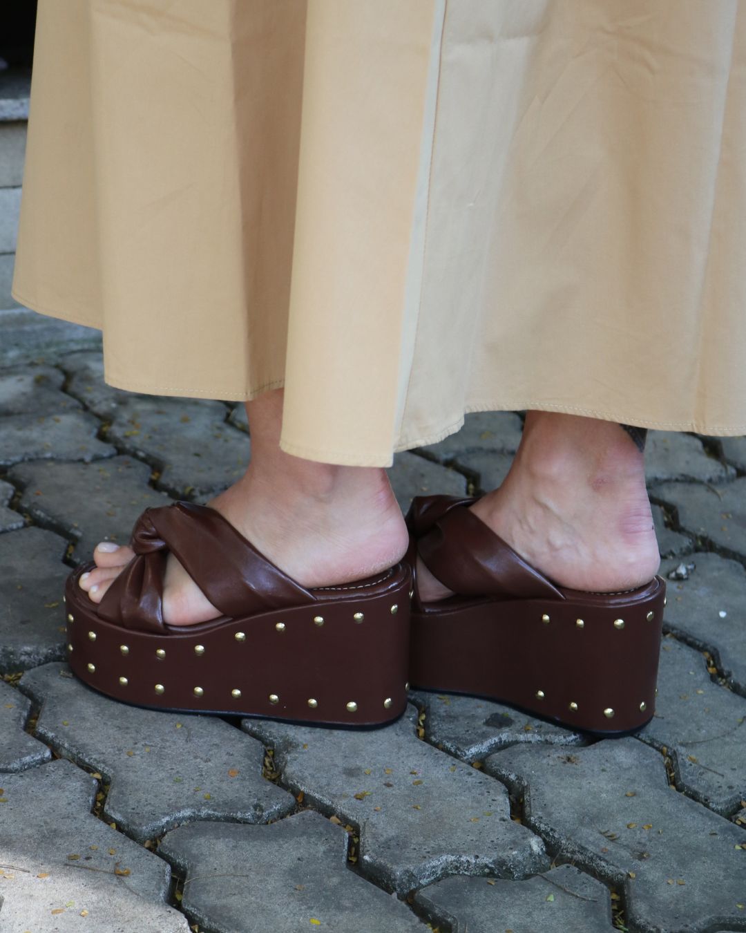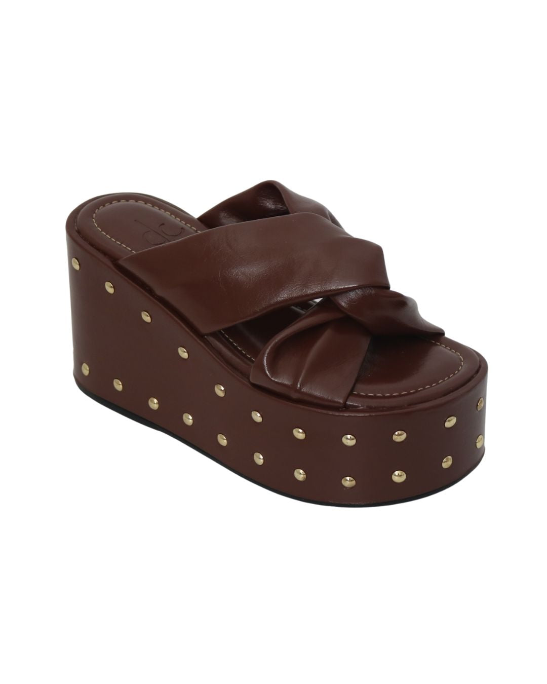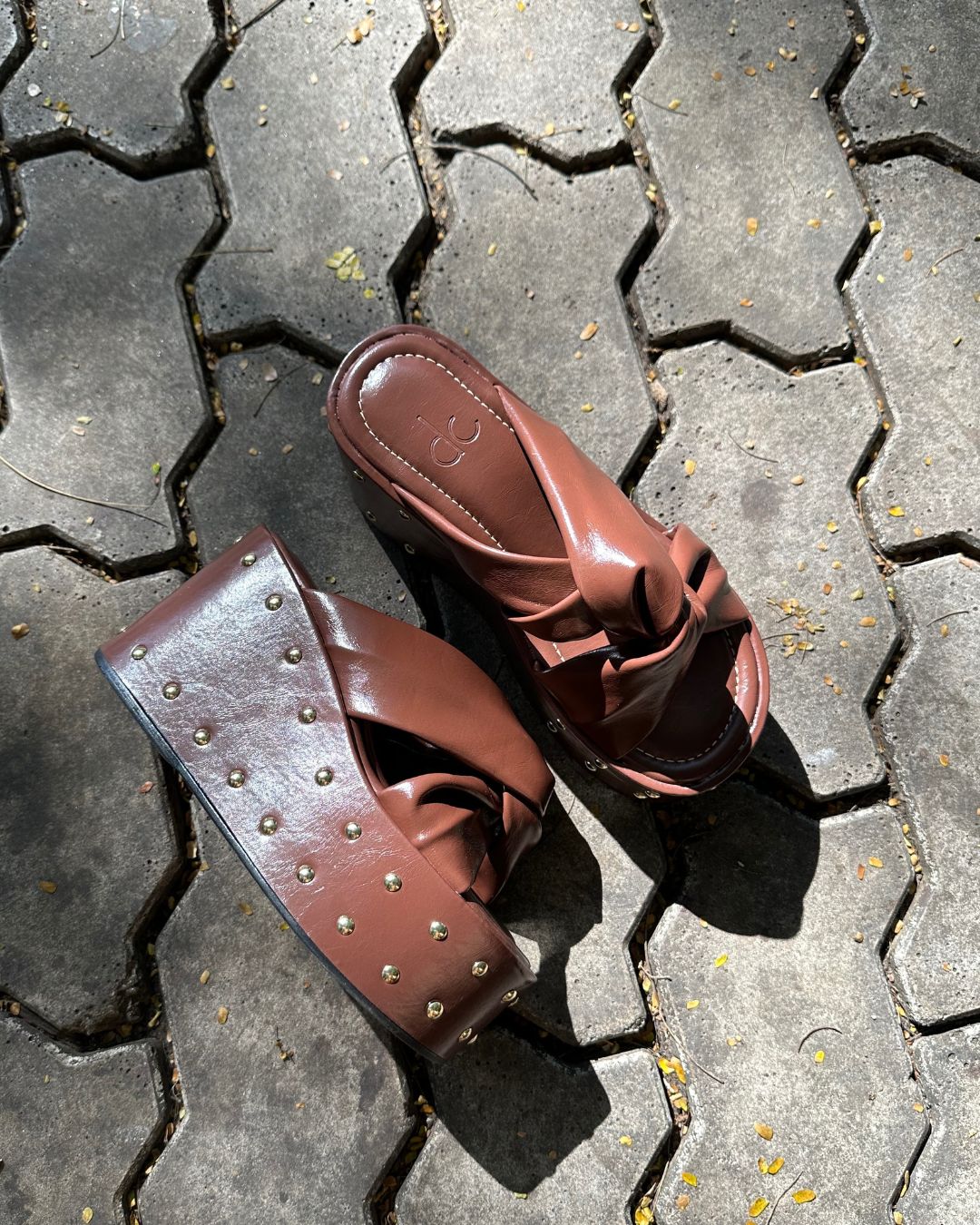 O marrom mais versátil da temporada agora em versão flatform — moderna, confortável e com aquele toque fashion que transforma qualquer look. O cabedal em tiras cruzadas envolve o pé com estilo, enquanto o solado robusto garante presença e atitude. Os studs metalizados na lateral dão o contraste perfeito, deixando o modelo ainda mais atual.