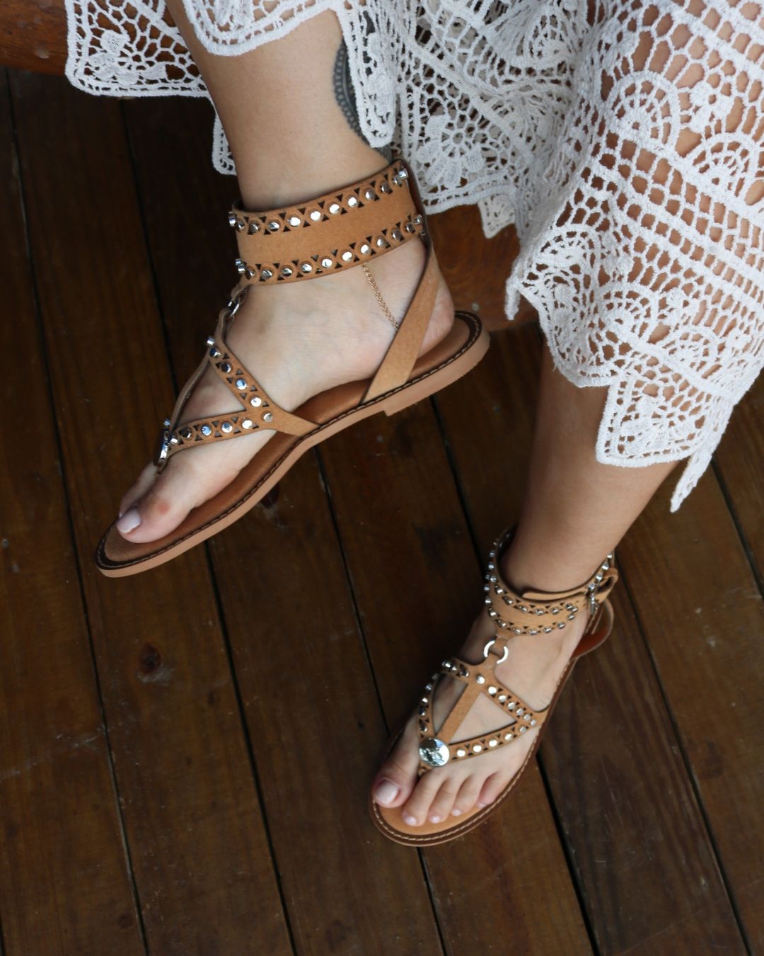 Sandália Com Aplicações Em Couro Legítimo Thaíse