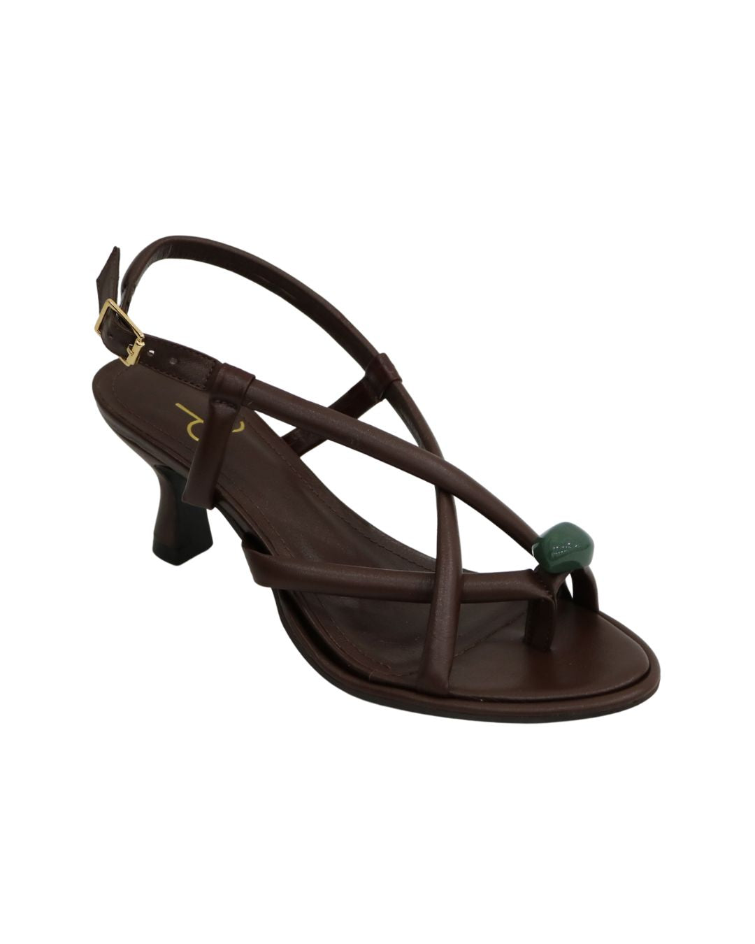 Uma peça que une arte e conforto. A sandália Aimê é feita em couro legítimo marrom, com tiras cruzadas que alongam o pé e detalhe em pedra verde que traz personalidade única. O salto baixo garante elegância sem abrir mão da praticidade, perfeita para te acompanhar do dia a noite.