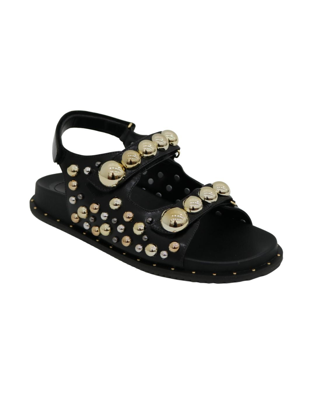 Sandália Papete com Aplicações em Couro Legítimo Preto Raíssa