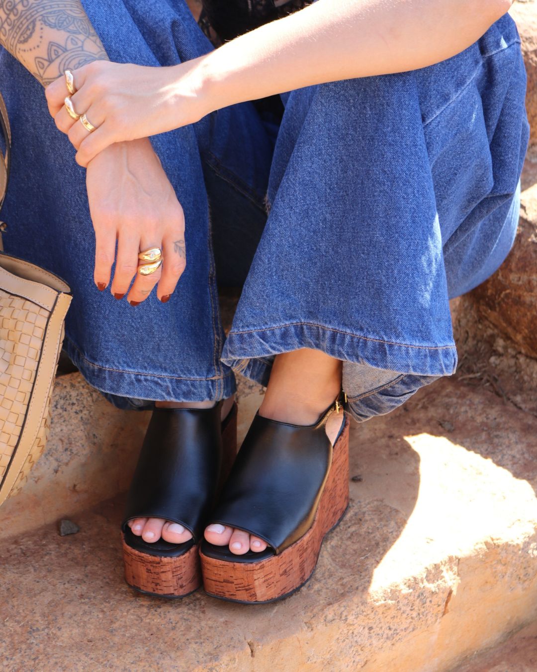 A plataforma que transforma qualquer look. Com cabedal preto minimalista e salto de cortiça superestiloso, a Natacha entrega altura sem abrir mão do conforto. Perfeita para alongar a silhueta e dar um toque fashion a produções casuais ou de noite. Leve, estável e cheia de presença para você usar do jeans ao vestido fluido.