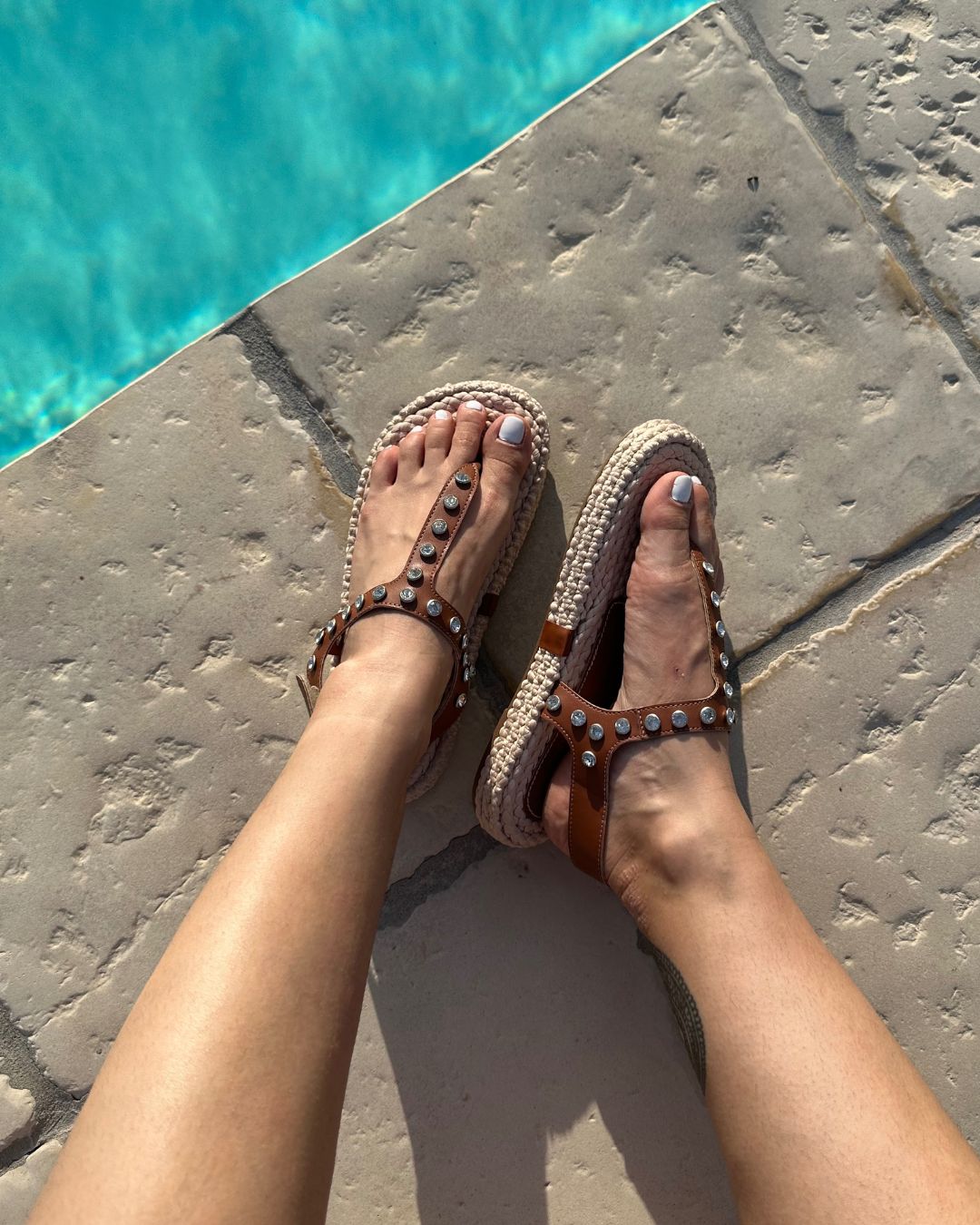 Sandália rasteira perfeita para o verão com solado em corda e tira única adornada com pedrarias brilhantes. Ideal para dias ensolarados, esse modelo combina a leveza da palmilha em corda com o toque glam das pedrarias, trazendo charme e frescor ao look. Ideal para passeios ao ar livre ou para compor produções descontraídas e elegantes na temporada de calor.