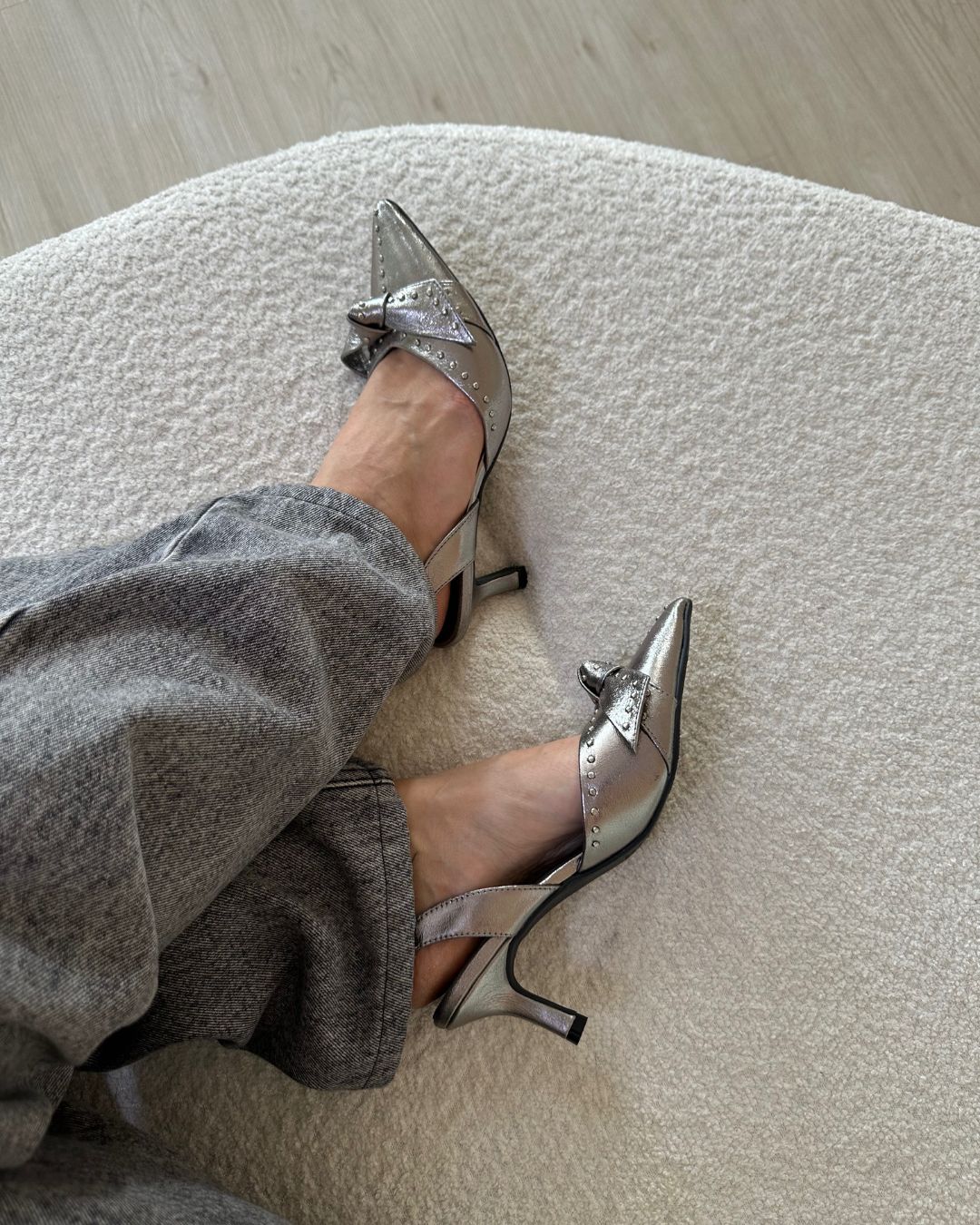 Confeccionada no couro legítimo, forro interno, tira com elástico para calce, baby salto de 7 cm